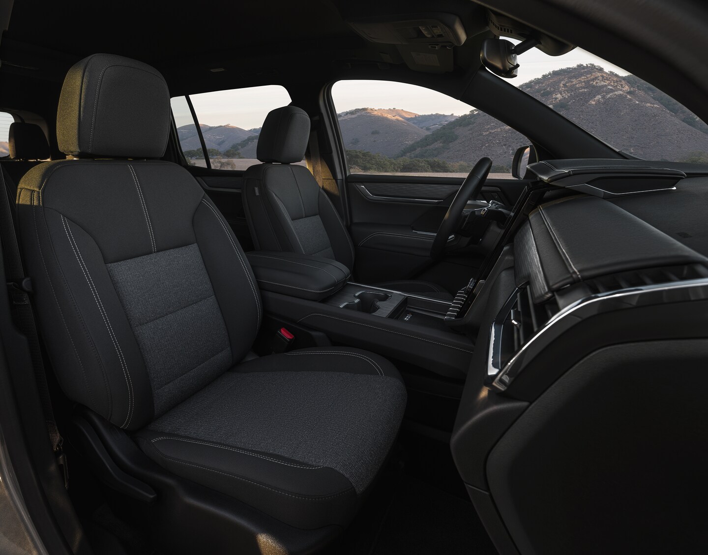 The Acadia's interior is thoughtfully designed to provide comfort and versatility. With seating configurations for up to eight passengers, the SUV ensures ample space for family and friends. The second and third rows feature manual-folding 60/40 split-bench seats, allowing for flexible cargo and passenger arrangements. Elevated trims offer additional luxuries, such as heated and ventilated front seats, heated second-row seats, and an available panoramic sunroof that enhances the cabin's airy ambiance on Conroe roads.