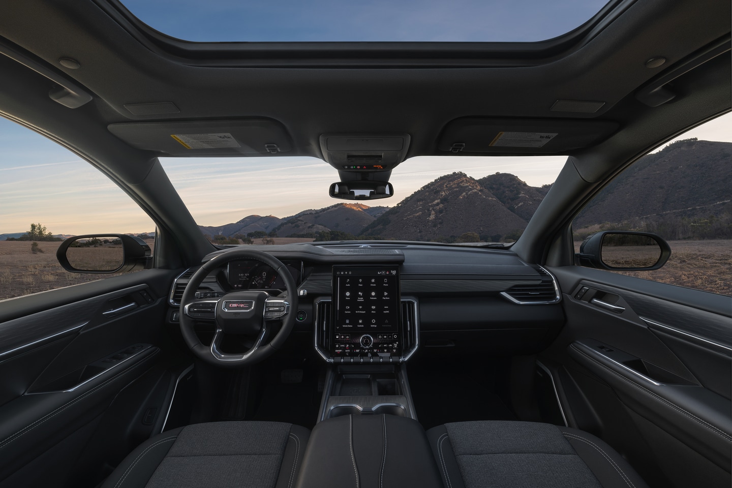 - Elevation - Starting at $42,900*, the Elevation trim emphasizes bold styling and practical features. It includes 18-inch Grazen Metallic painted aluminum wheels, LED lighting with GMC's signature C-shape design, and three rows of versatile seating accommodating up to eight passengers.